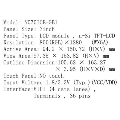 Υψηλής απόδοσης 7 ιντσών TFT-LCD μονάδα οθόνης με ανάλυση 800*1280 WXGA, με τεχνολογία IPS για ευρείες γωνίες θέασης και εξαιρετική αναπαραγωγή χρωμάτων.
