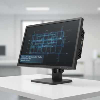 Οθόνη LCD βιομηχανικού τύπου υψηλής απόδοσης 21.5 ιντσών σχεδιασμένη για εφαρμογές επιτραπέζιων υπολογιστών, με ανάλυση Full HD και στιβαρή κατασκευή για απαιτητικά περιβάλλοντα.